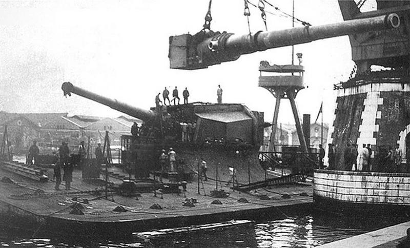 Монтаж 381-мм/40 орудия "Ансальдо" образца 1914 года на "Фаа ди Бруно", 1917 год.