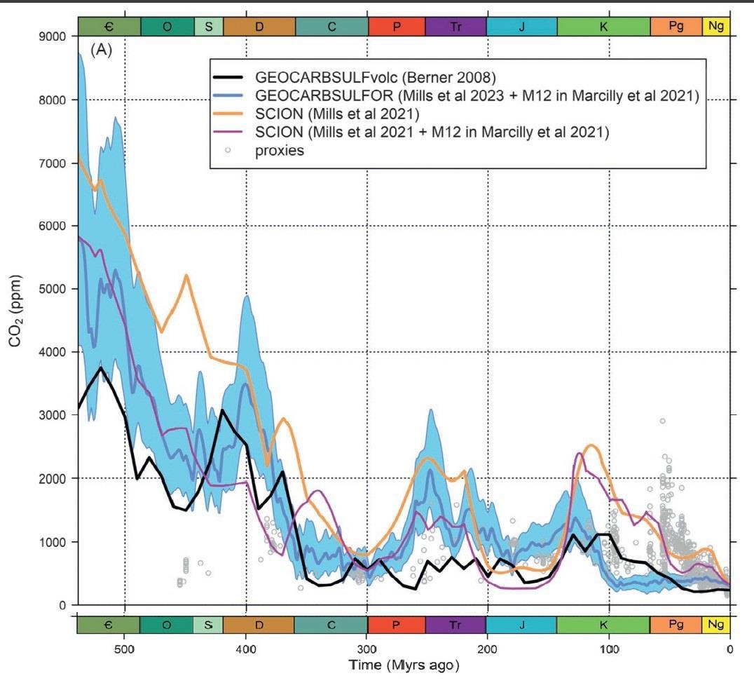 График концентрации углекислого газа в фанерозое (указаны все оценки концентрации CO2):