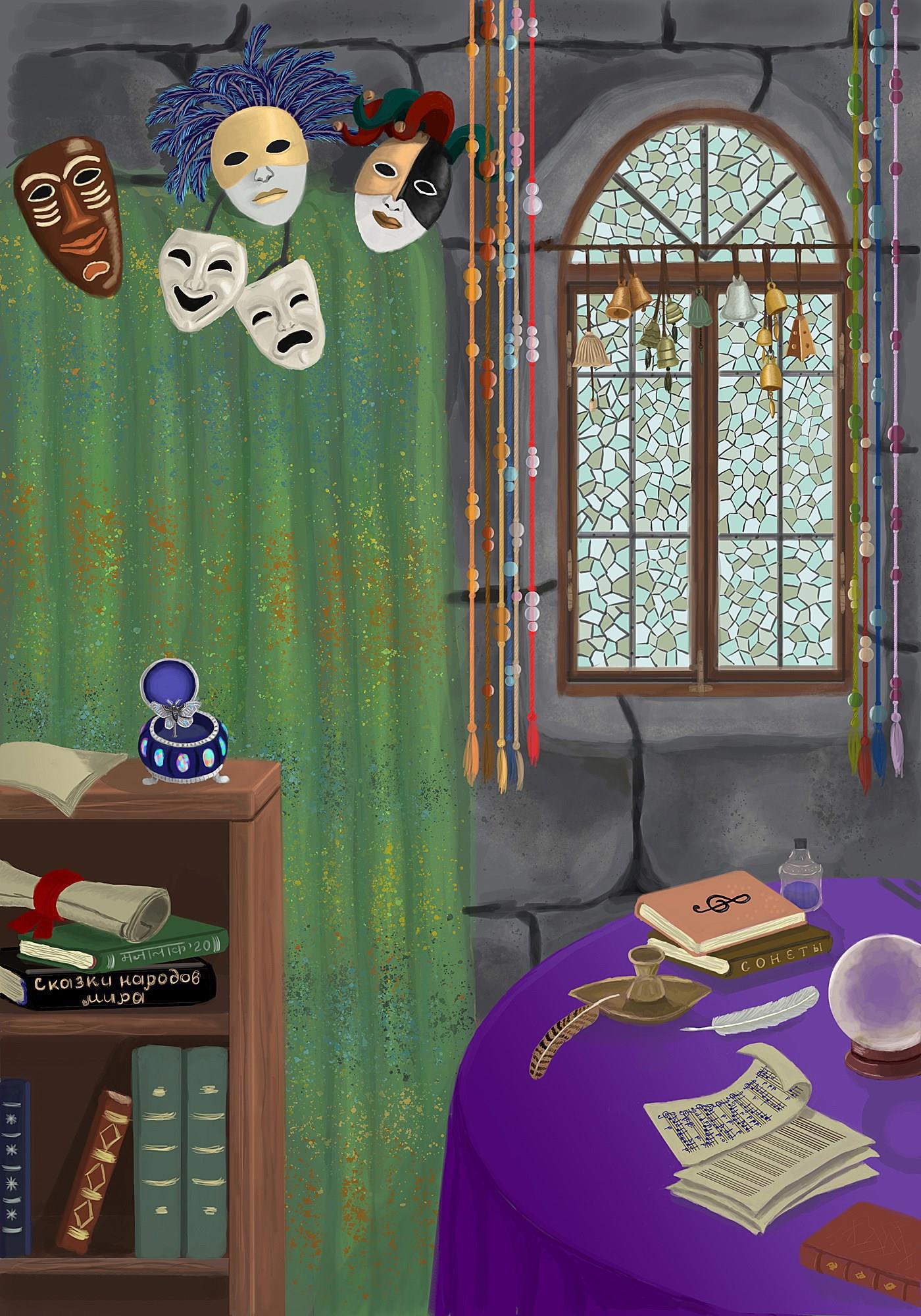 Он перебирал свои смешные сокровища - музыкальная шкатулка, хрустальный шар, листы со стихами, набросками песен и ещё множество других, дорогих ему предметов, не имеющих ни цены, ни ценности. Шут прощался с ними. Он качнул колокольчики у окна, которое никогда не открывал, и они печально зазвенели - каждый на свой лад.