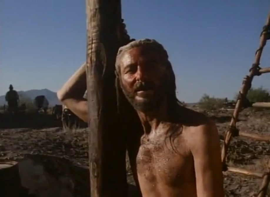 В этом смысле для финала очень важна сцена с крестом. Примечательно, что его несут не христиане, а индейцы. Они подлинные мученики конкисты – непонятые, обманутые и по-прежнему наивные. Среди них тощий, полубезумный испанец в рванине с бородой. Он бродит по лагерю Сан-Мигель от клетки к клетке и успокаивает сидящих там туземцев. Он мечтает созидать и призывает захватчиков к милосердию, но его никто не слышит.
