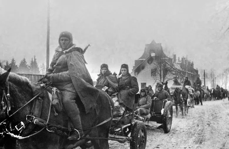 Старший ездовой – мл. сержант (карабин, компас). Верховая лошадь.