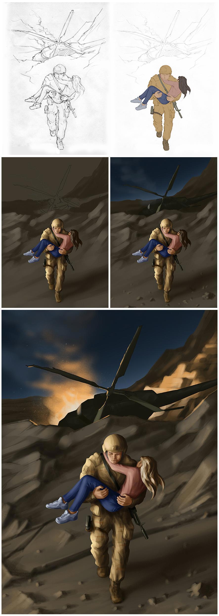 Автор: Салихов ВасильДля тех, кому интересно - очередная поэтапная хронология создания иллюстрации для романа "Код Гнева" Ирины Валериной и Георгия Трегуб. Пришлось поиграть со светом, что бы правильно передать атмосферу сюжета.