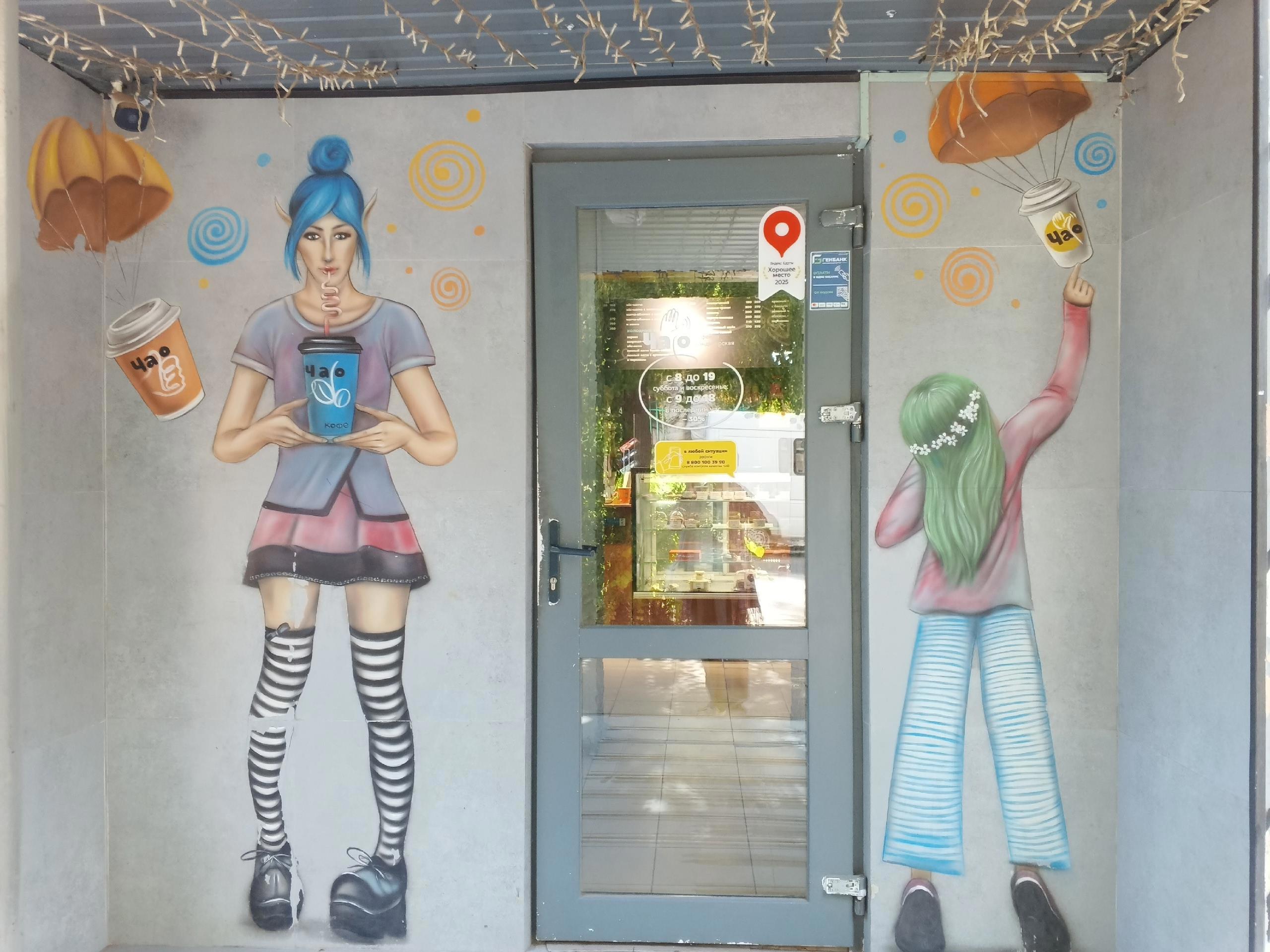 А вот и то, что заставило нас остановиться и восхититься. Вход и стена расписаны просто восхитительно.