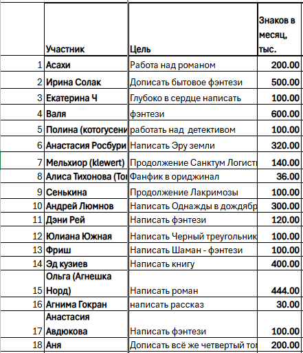 - Ваша цель на марафон: суммарное кол-во знаков, которые планируете написать (не надо расписывать по каждому произведению, если больше 1).