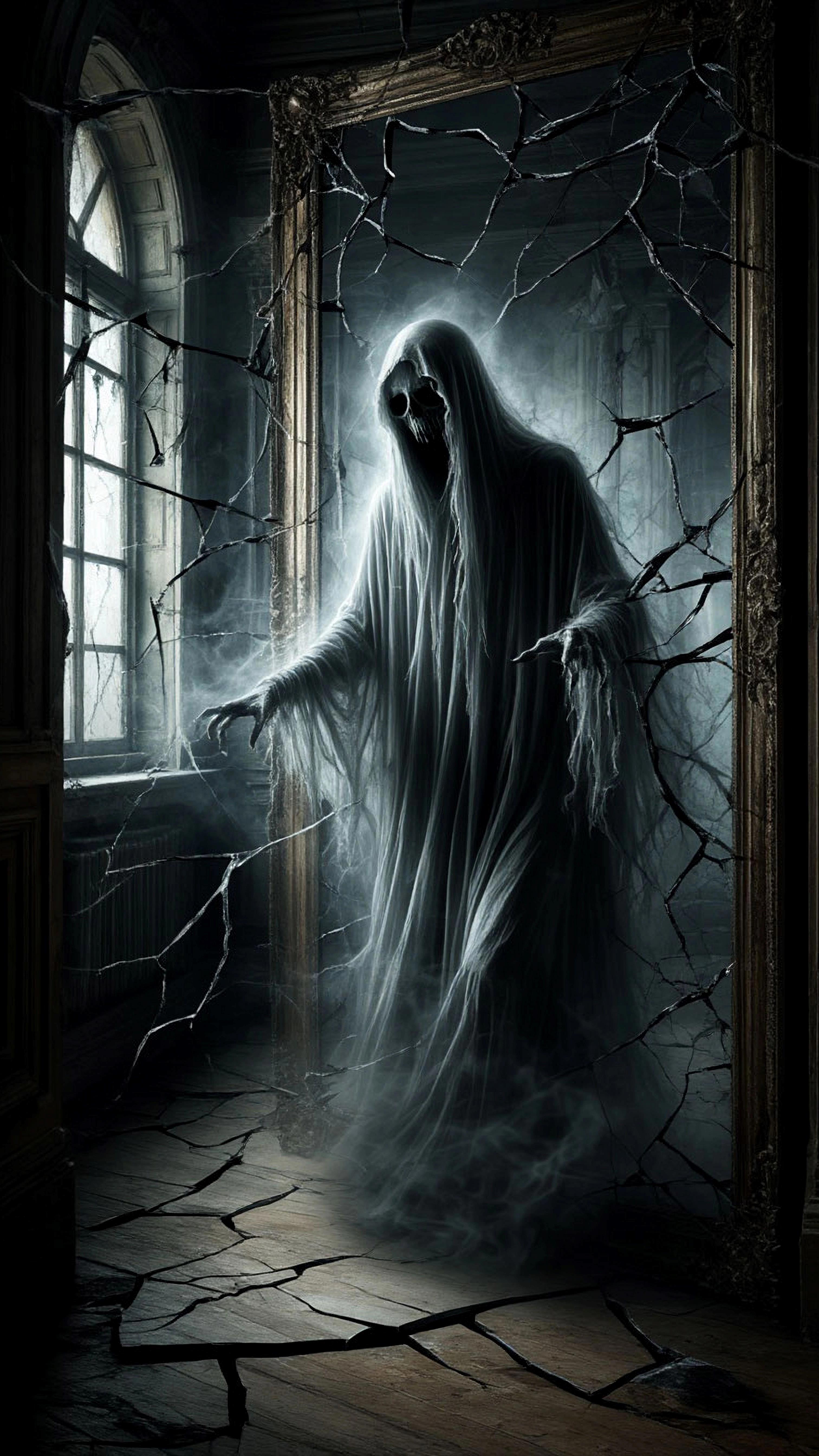 Автор: Юлия ЖарковаЗеркальная поверхность подёрнулась призрачной дымкой. В глубине задрожал, разрастаясь, темный силуэт. Поверхность покрылась сетью тонких трещин, послышался хрусткий треск. Несколько кусков стекла выпали и с тихим звоном упали на кафельный пол. Сквозь прорехи из зеркала в комнату потекли струйки дыма и остро запахло гарью. Меня сковал страх, не двигаясь, широко распахнув глаза, я наблюдала за происходящим.