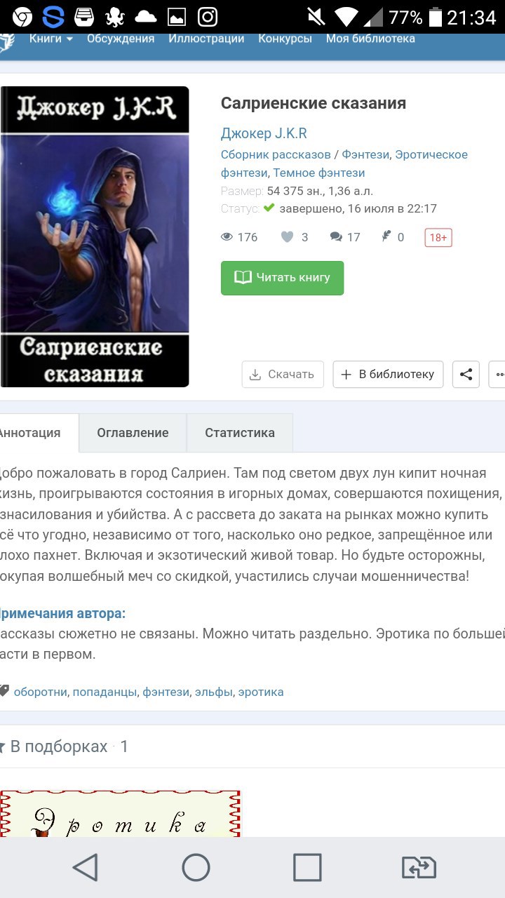 К чему я все это расписал. Не суди, да не судим будешь. На глаза мне не раз за сегодняшний день попадались комментарии недовольных людей из-за серии его блогов посвящённых конкурсу. Вот понимаете, он говорит В ТОПКУ по обложке чужих людей, а свои забыл привести в порядок. Качество картинок ужасное, они даже не соответствуют описанию аннотации. Это я его словами говорю.