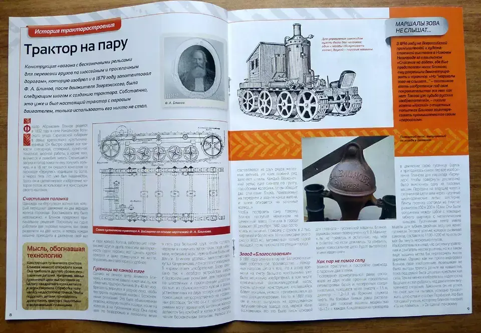 С доказательствами существования первого в мире, парового трактора на гусеничном ходу, как-то хреново. Повсюду повторяют одну фразу из патента, о вагоне на гусеничном ходу и ни слова о двигателе, вроде бы он передвигался благодаря лошадям. В другой статье пишут о паровом двигателе.