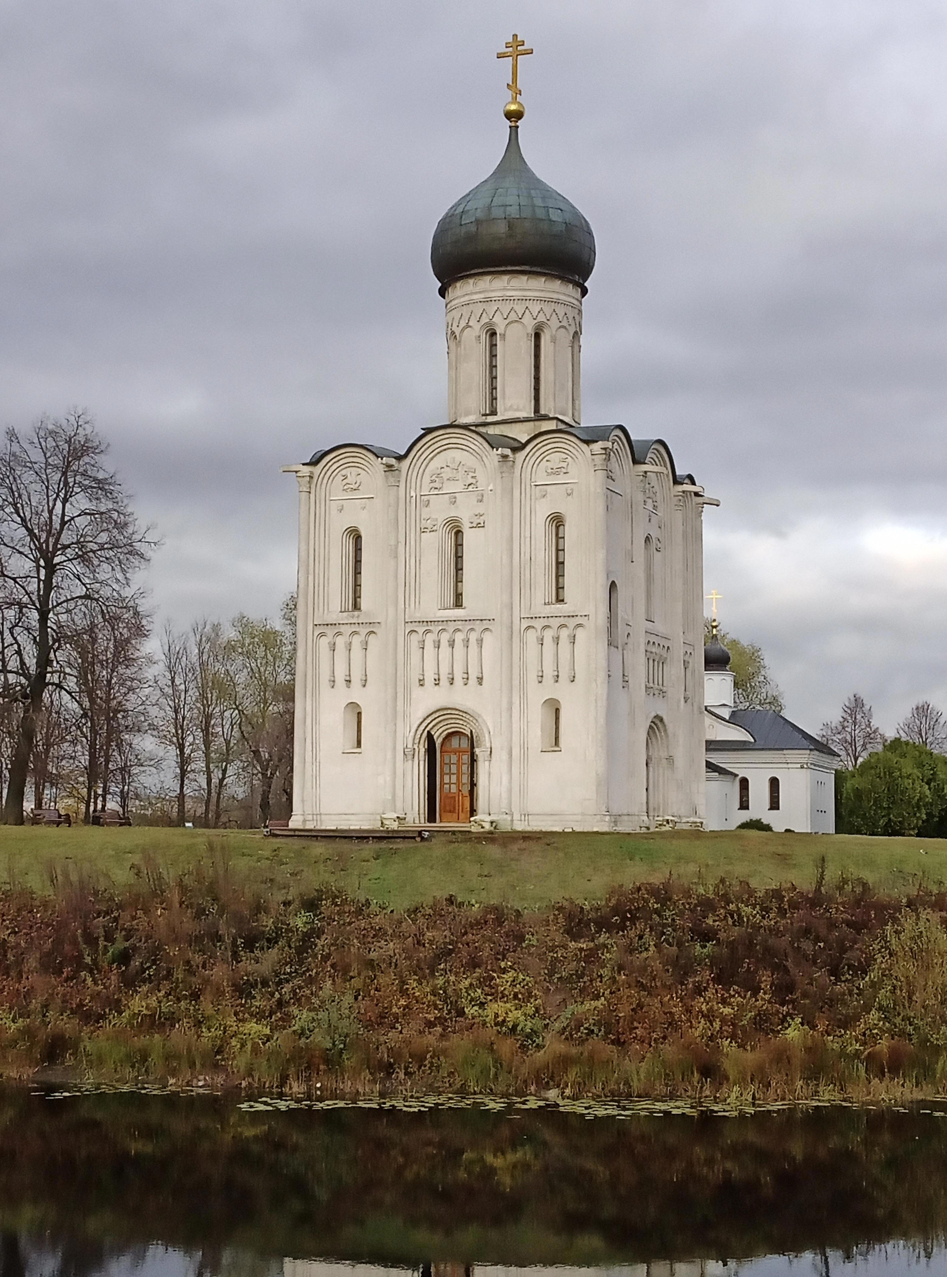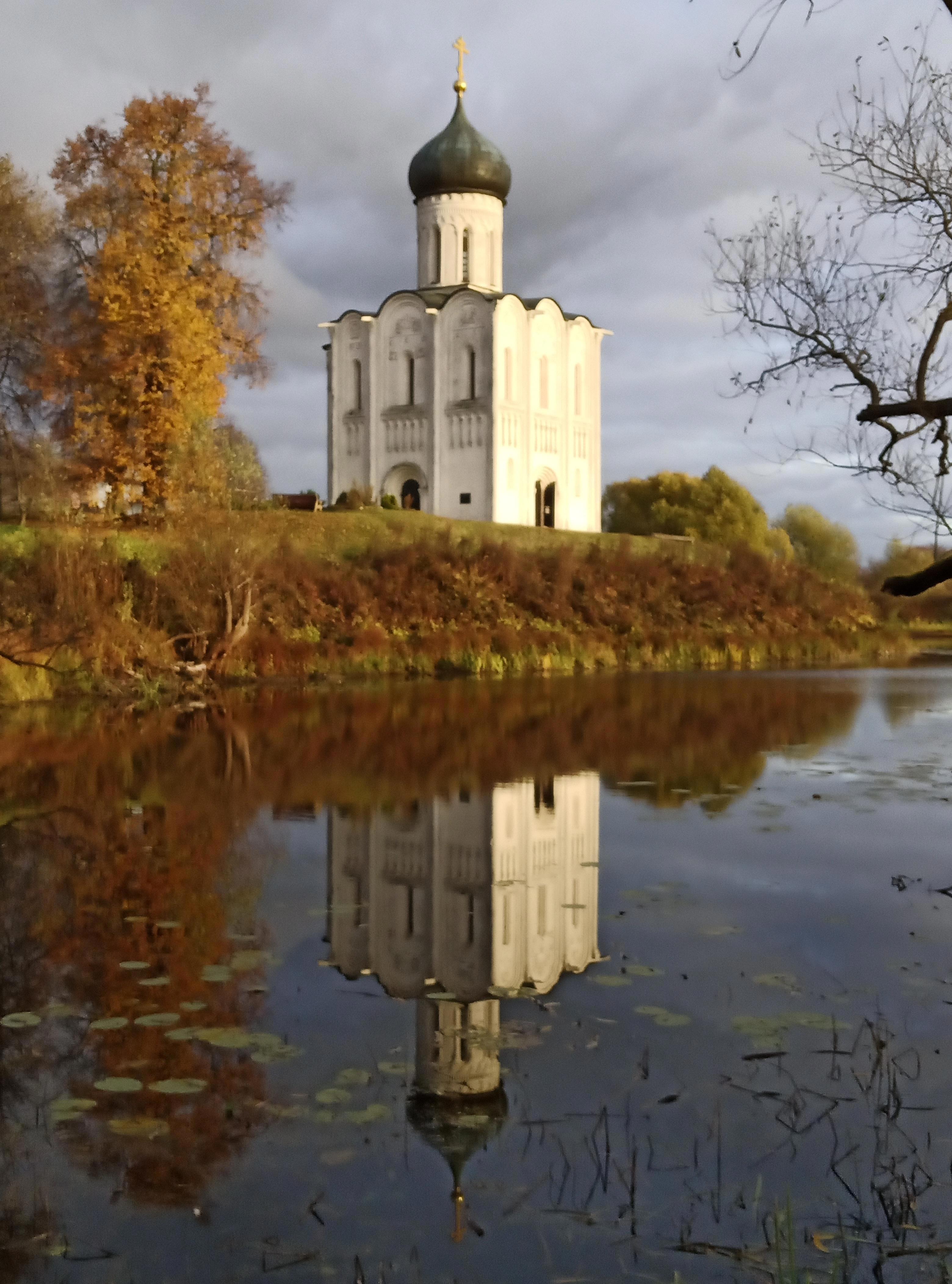 С отражением в воде нравится. Были там лет 5 назад весной, сразу после половодья, и пруд при церкви был с бОльшим количеством воды. Но и сейчас по осени там весьма красиво