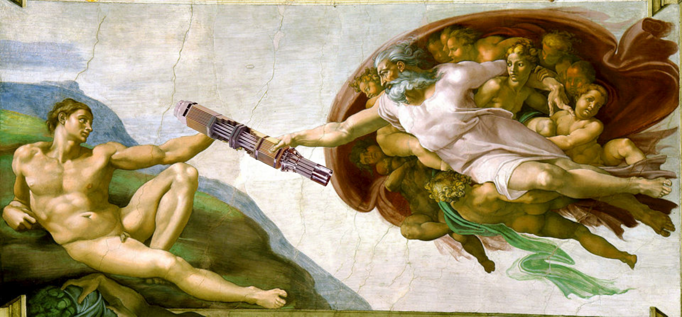 На тему " Сделка, предложение" мне не пришло в голову ничего, кроме Адама, которому Господь вручает топливную сборку. Этого бедного Адама давно уже растащила на мемы вся мировая общественность, вот теперь и я тоже...