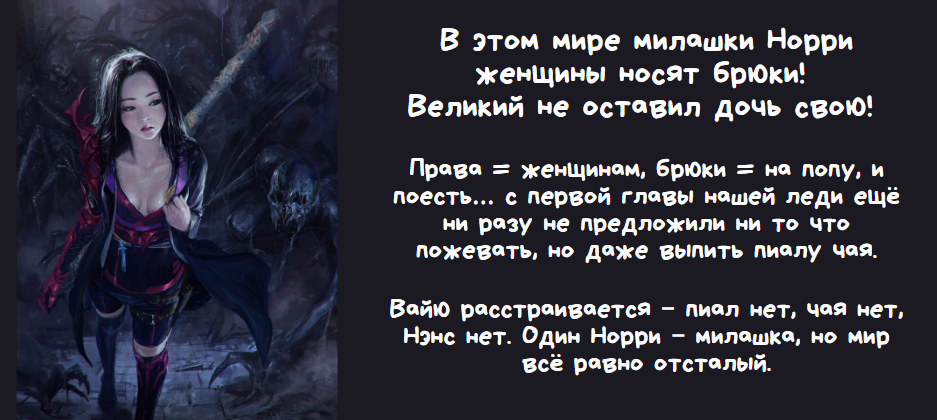 В мире милашки Норри есть «темное пламя», «опаленные», и вот это всё, такое родное, что просто нельзя пройти мимо – как истинной Темной Леди – ей непременно нужно влезть в самое пекло.