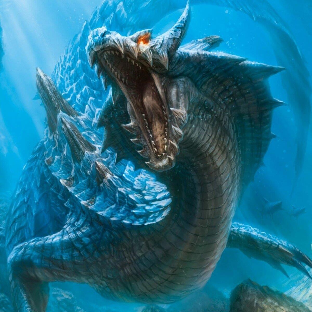 Морской змей гигантских размеров, вынужденно/принужденно обитающий в разломе, тянущемся по дну моря и наполненном огненной лавой как нейтрализатором его возможностей.