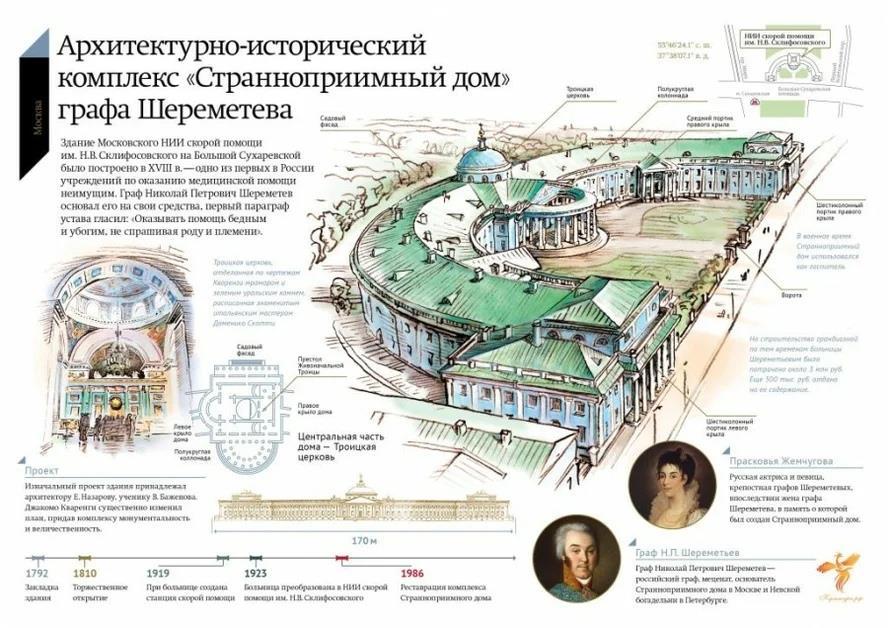 Автор: Алена ИзмайловаИстория современного научно-исследовательского института скорой помощи имени Н.В. Склифосовского, больше известного как больница Склифосовского, началась более 200 лет тому назад, когда, благодаря графу Н.П. Шереметеву, был построен Cтранноприимный дом на 100 мест, который включал больницу и богадельню. Немногие знают, что здание Шереметевской больницы строилось как памятник великой любви.
