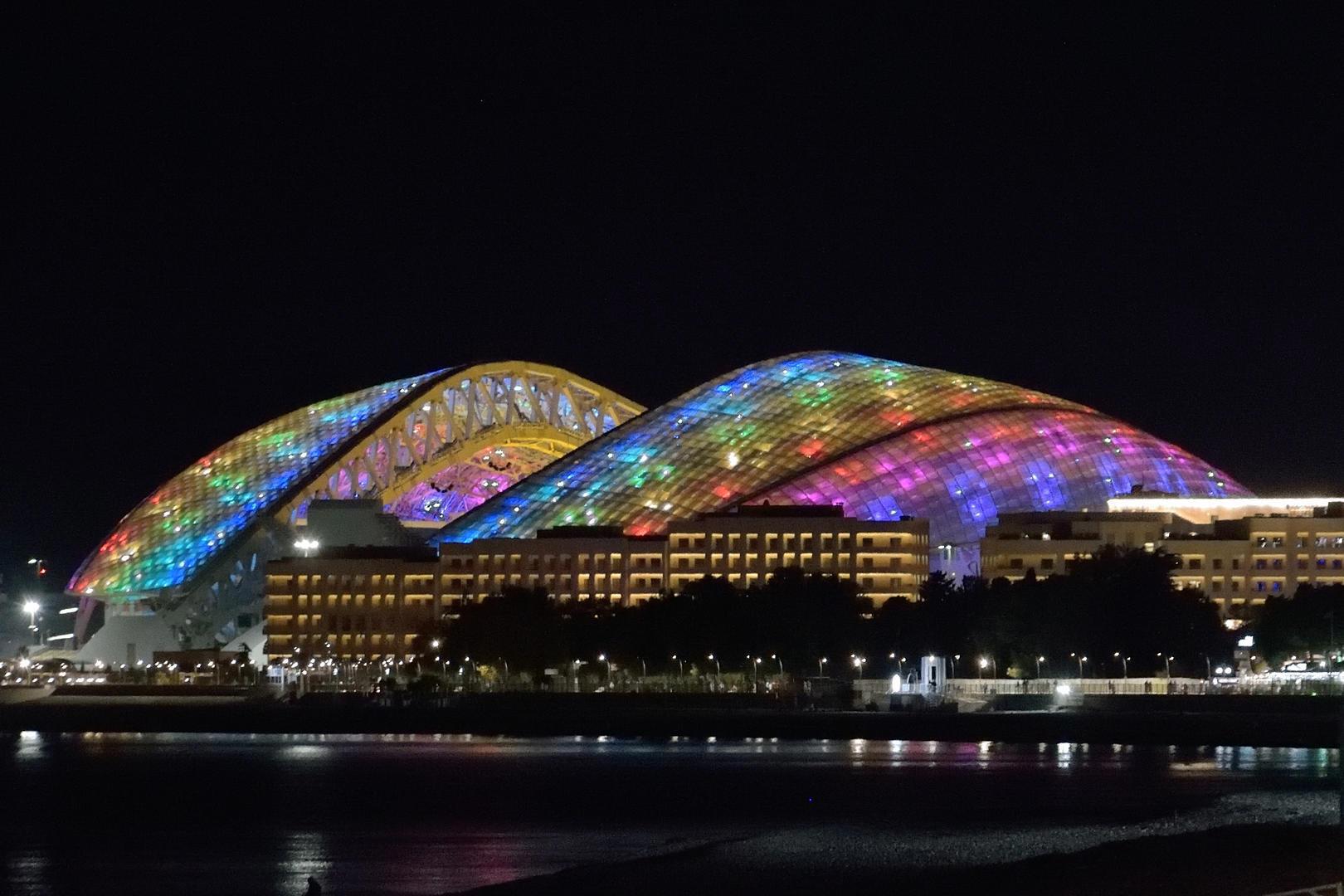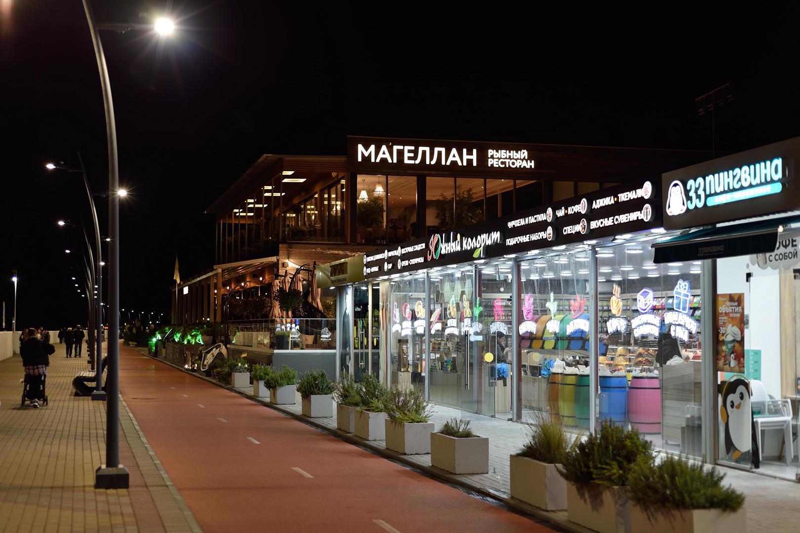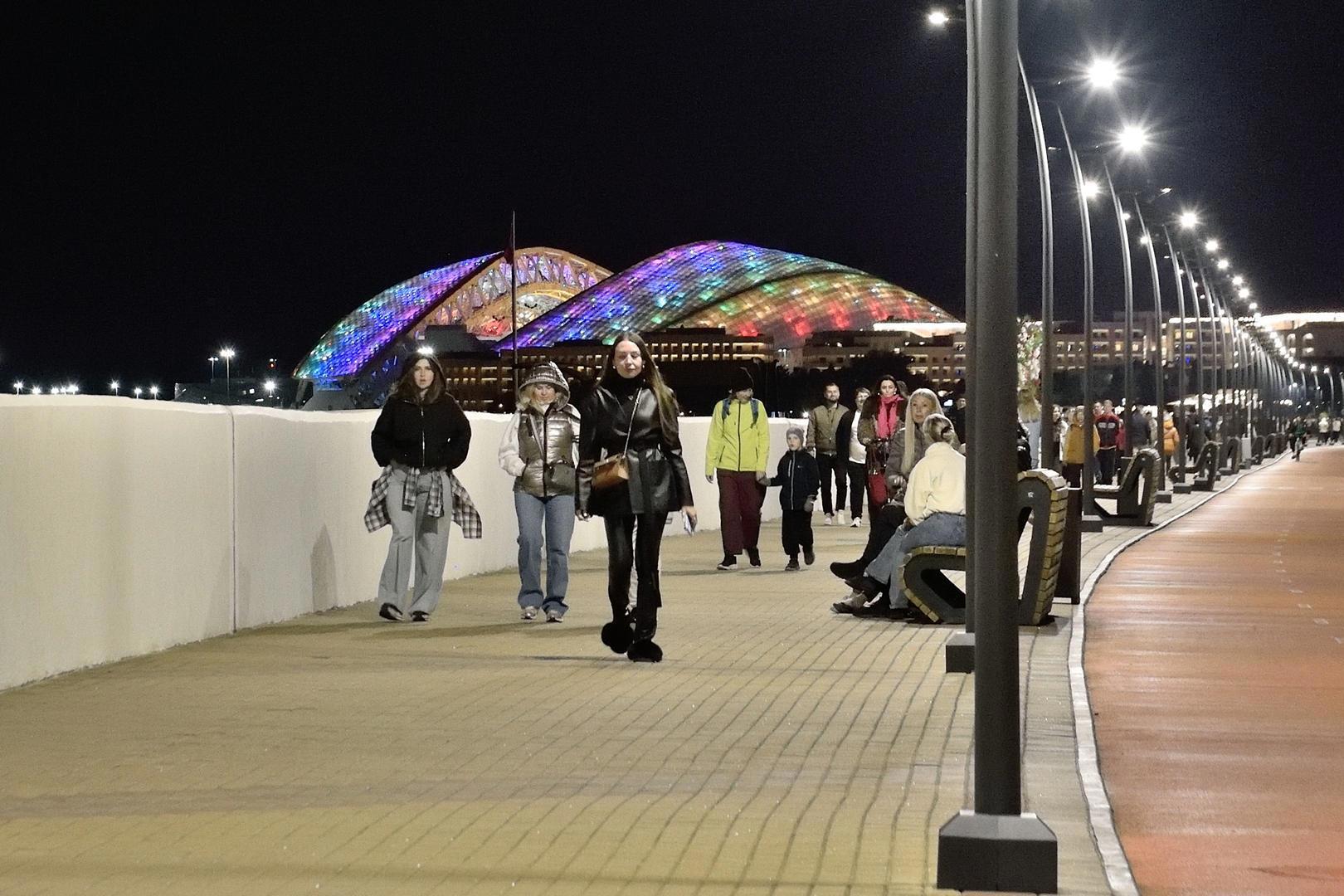 А это уже Адлер - Имеретинская набережная, которая тянется на 7,5 км, аж до границы с Абхазией. А вдали Одимпийсий стадион.