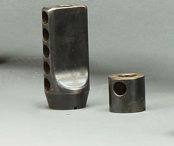 Вариант дульного тормоза для стрельбы боевым патроном (слева) и для стрельбы учебно-тренировочным патроном (справа).