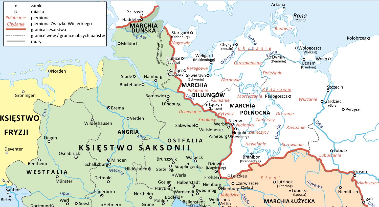 - Лужичи (Lunsizi) – 30 городов. Западнославянское племя лужичан, селившееся по среднему течению реки Шпре (Спревы) в районе современного немецкого города Котбус. Потомки лужичан сохранились как самостоятельный народ до настоящего времени.