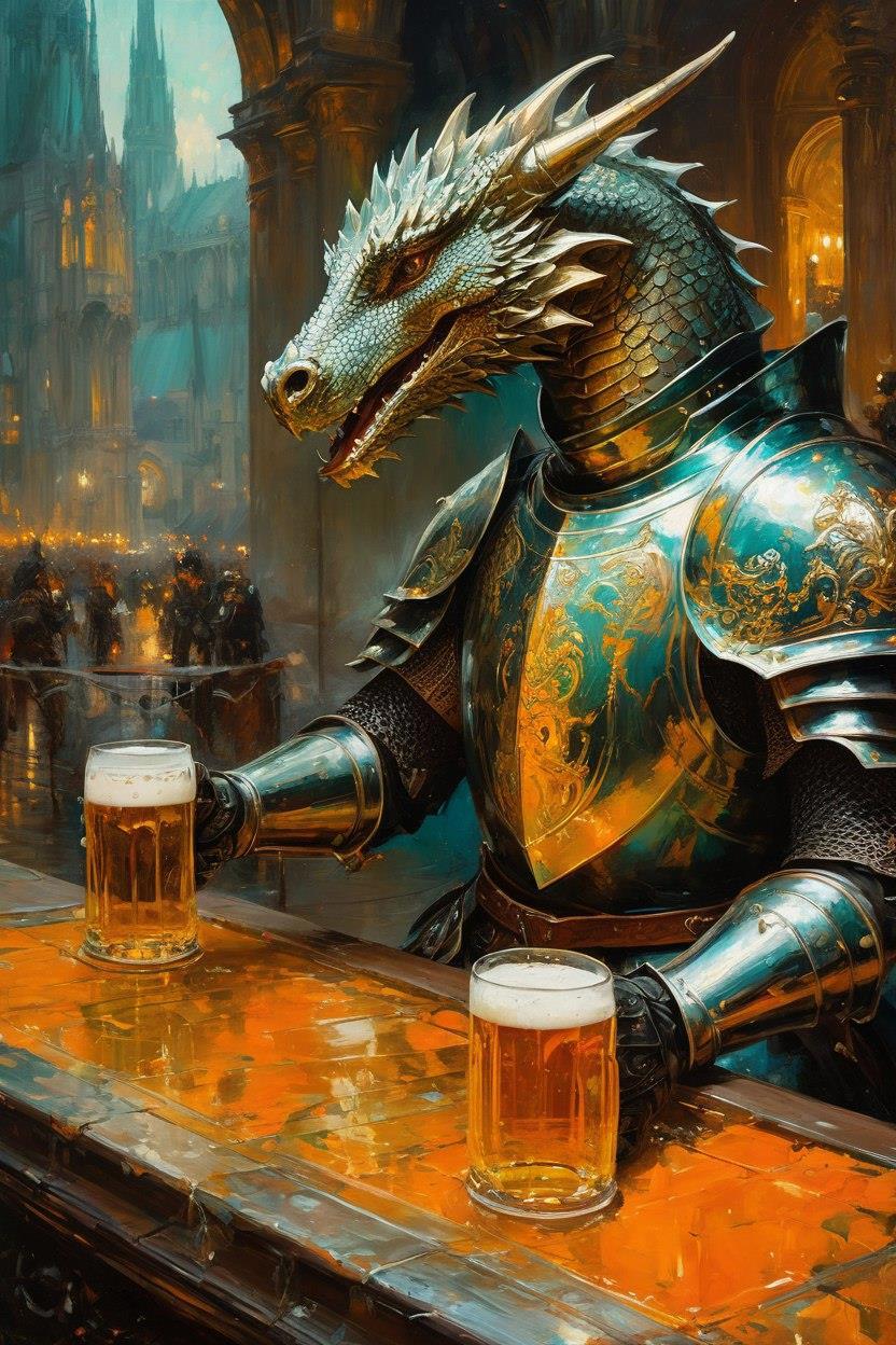 Кстати, эти странные истории мне рассказывает за кружкой пива... Дракон. Мне удалось его сфотографировать, пока он искал рыцаря в баре.