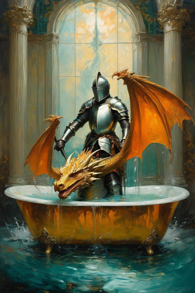 Во время мытья подкрался дракон. Не на того напал!
