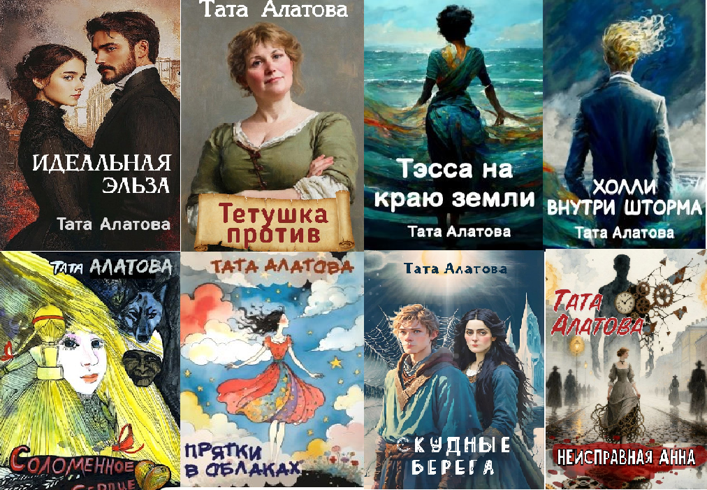 Не все обложки книг Таты Алатовой уместились на рисунке - читайте на платформе