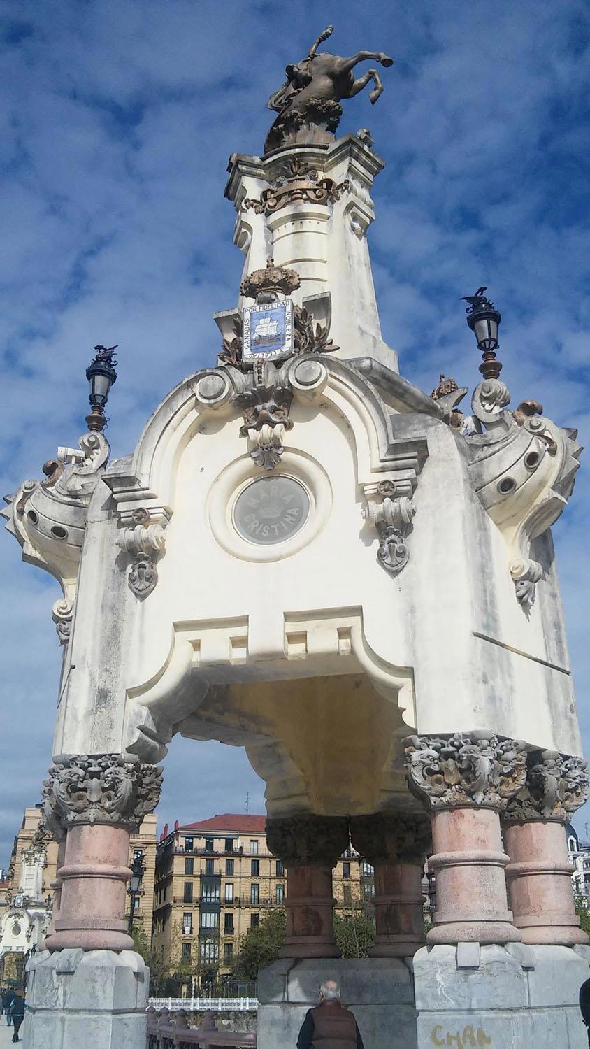 Автор: Николай Zampolit СоболевМы перешли Урумеа по мосту Марии-Кристины, украшенному четырьмя пилонами, на которые безумный архитектор впихнул все и сразу: колонны, капители, ростры, картуши с гербами, чугунные фонари, вензеля, короны и, будто этого мало, зафигачил по конной статуе на вершине.
