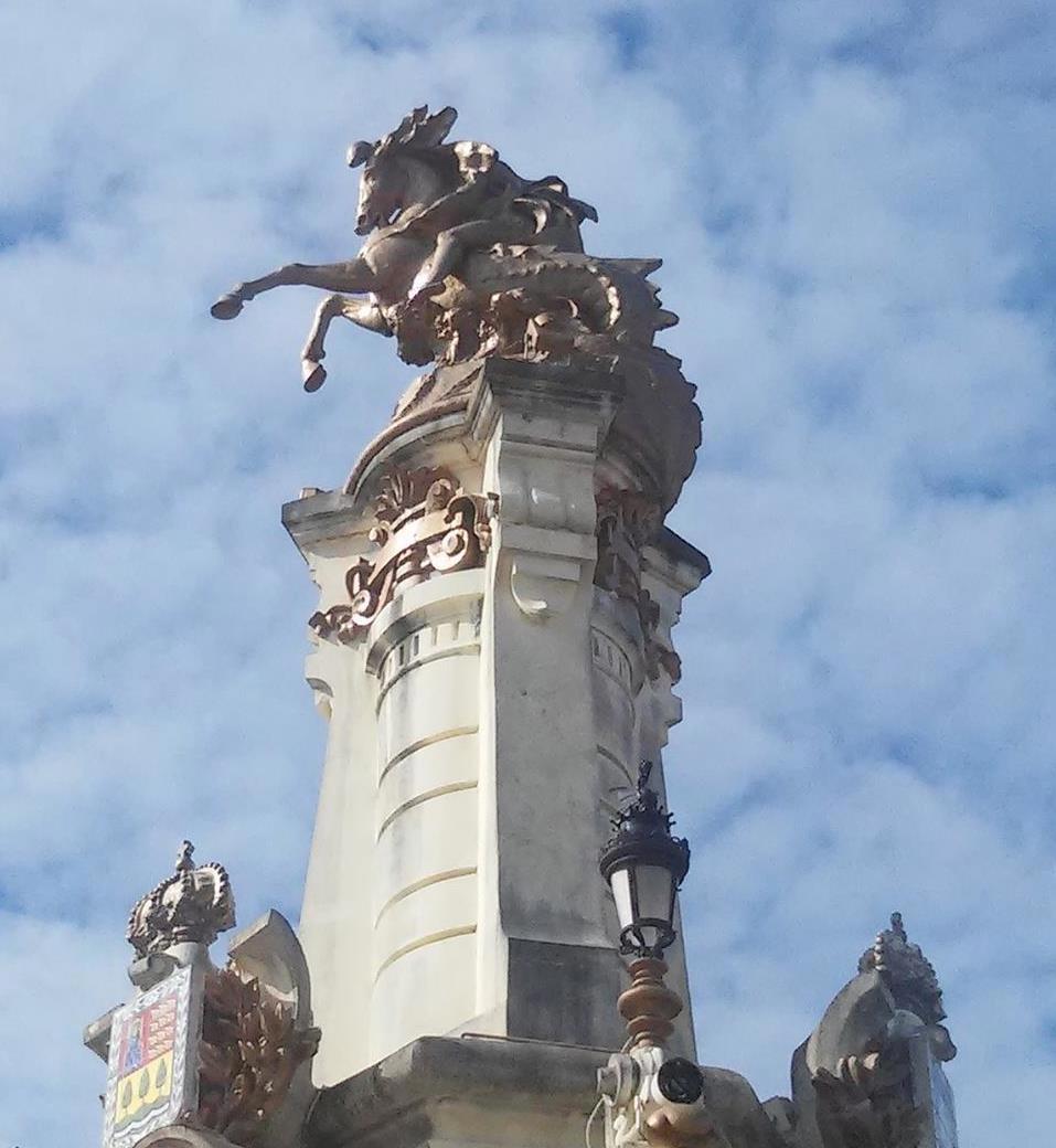 В общем, накрутил на пилоны все архитектурные украшательства, которые знал. За исключением конных статуй — их создавал мадридский скульптор Анхель Гарсия Диас.