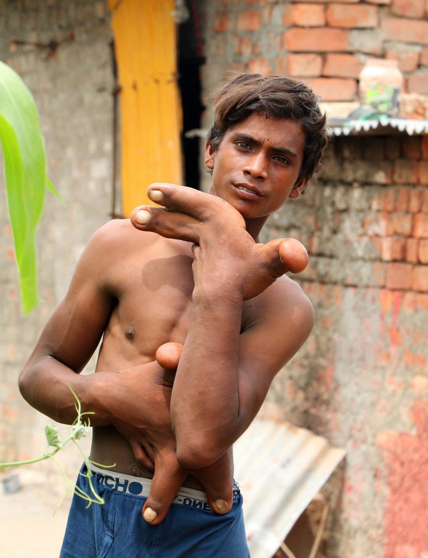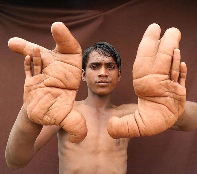 Тарик, из Уттар-Прадеша, Индия, с самого рождения обладал большими руками. Никто не поставил мальчику диагноза, но некоторые врачи предполагают, что речь может идти об элефантиазе.