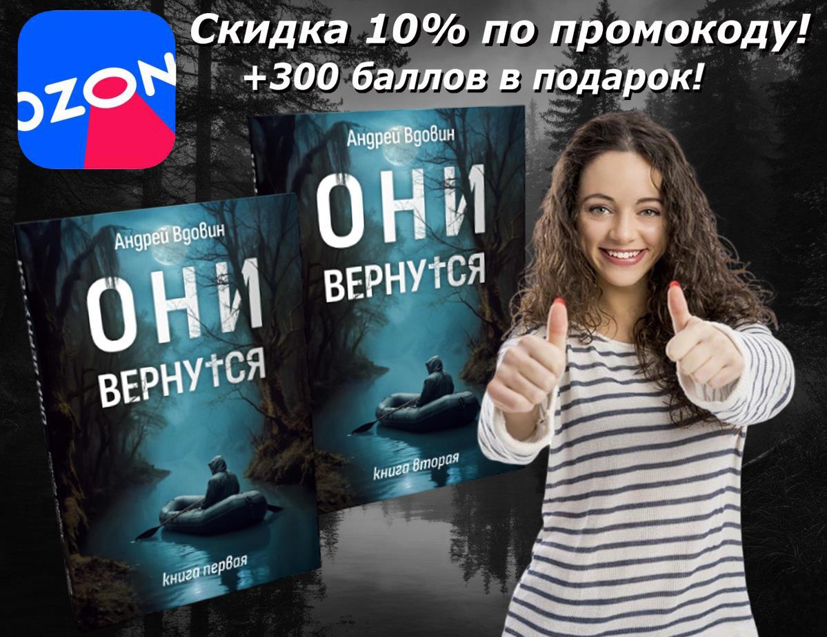 Автор: Андрей ВдовинСпешу сообщить, что в течение ближайших двух недель все желающие могут воспользоваться промокодом RGRMF2BC48D9, чтобы получить скидку 10% при заказе моего двухтомника «Они вернутся» на OZON!
