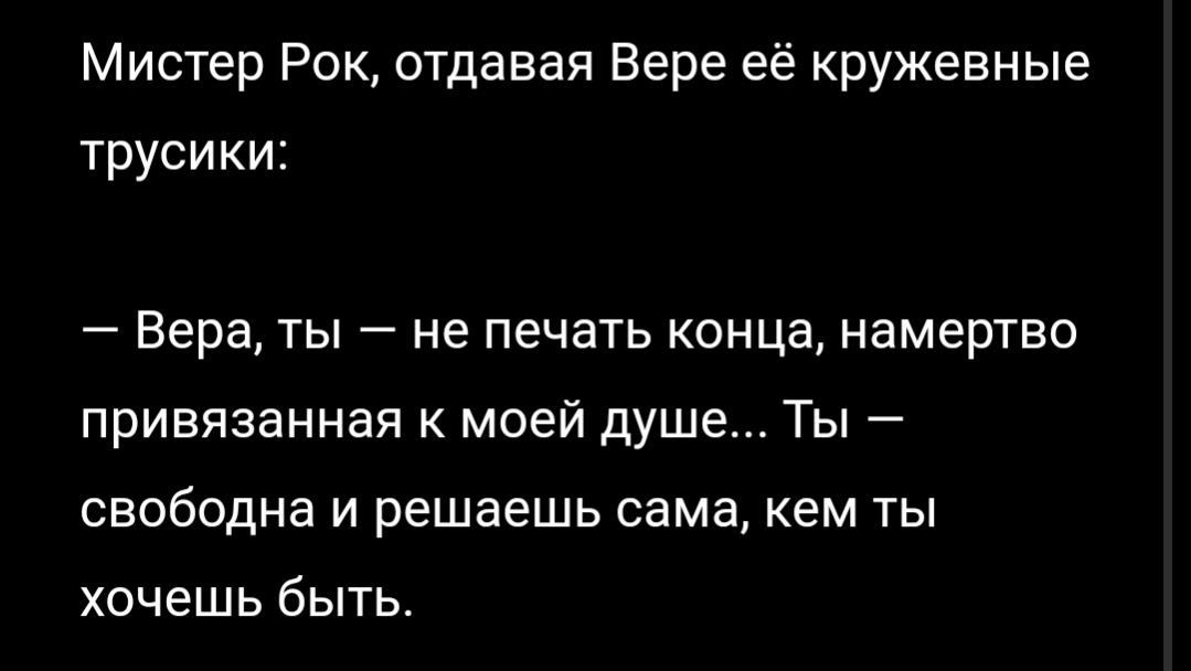 И в этот момент он осознал это приятное чувство до конца. Это не было разрушением его собственного привычного ему мира. Это было наслаждение контрастом. Её хрупкий, блестящий ритуал на фоне его грубой, несовершенной музыки создавал странную, но идеальную гармонию. Её розовый лак на ногтях был так же уместен здесь, среди его бешеных электрогитар и тяжёлых железных цепей, как шипастая роза на чёрной колонне... Они не смешивались. Они сосуществовали, подчёркивая красоту друг друга.