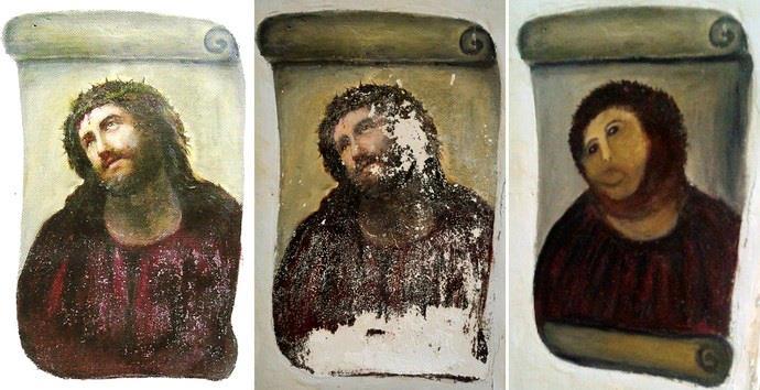 Власти города Борха, где находится эта фреска, даже организуют в сентябре концерт, посвященный десятой годовщине с момента неудачной реставрации и главной героине этой истории - 91-летней художнице Сесилии Хименес Суэко. Она была простой прихожанкой, которой доверили обновить работу мастера Элиаса Гарсиа Мартинеса (1858-1934), созданную в 1930 году. В последствии выянилось, что у Сессилии развивалась старческая деменция...