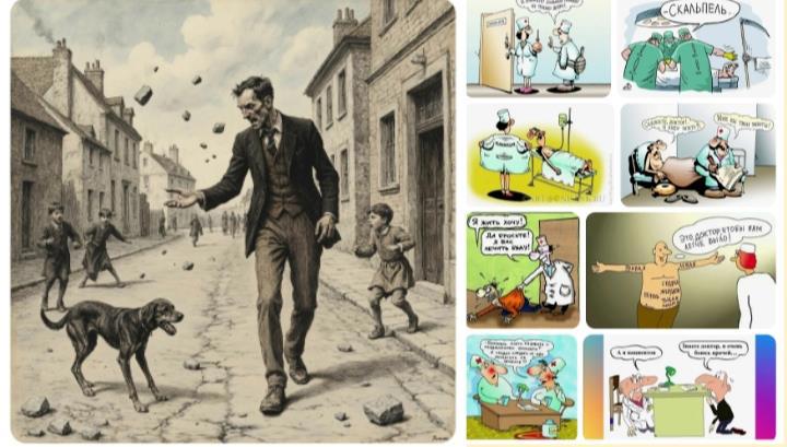 Идёт по улице дистрофик с собакой и дети вдруг стали в них кидаться камушкам.
