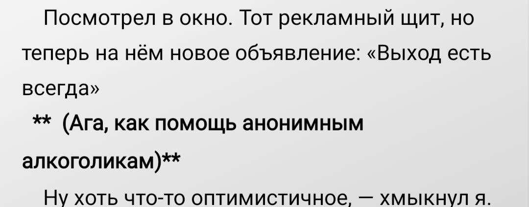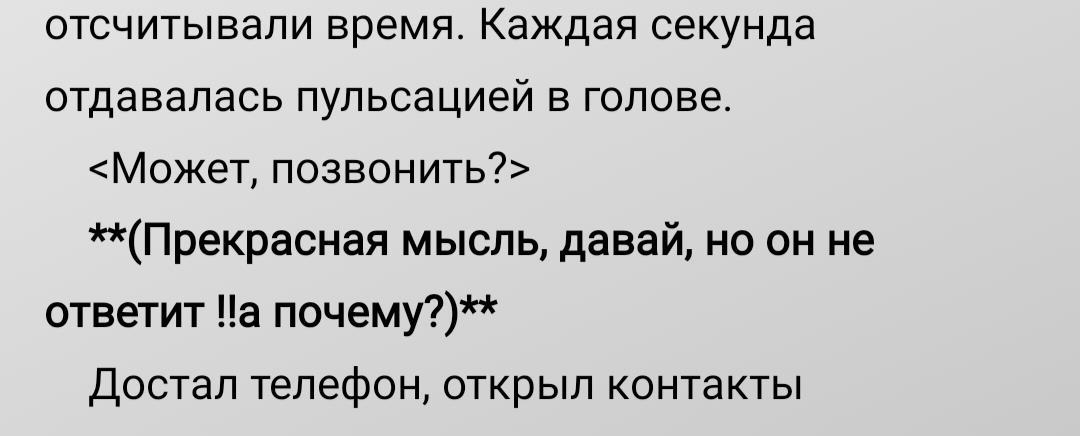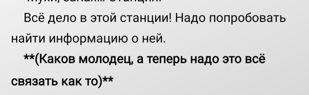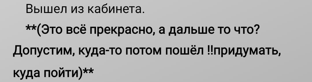 ). Особенно, когда мысли бегут быстрее сюжета: надо и мысль не потерять, и детали потом не забыть придумать. И вот что получается (комментарии в скобках):