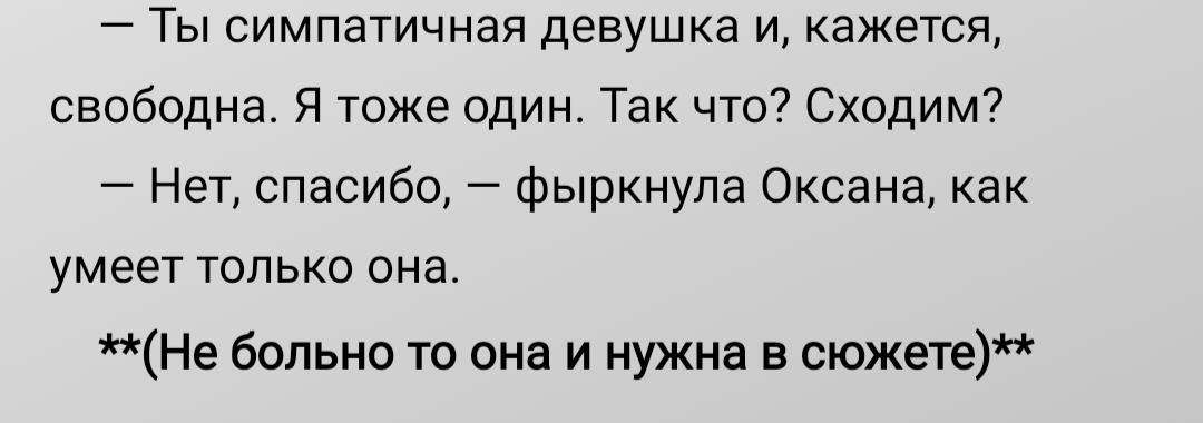 Покажу кусочек процесса написания. Иногда я не могу удержаться и комментирую сцены прямо в тексте (главное, не забыть их убрать оттуда