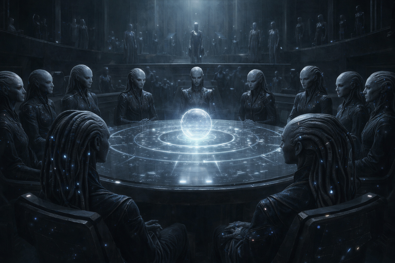 У Атари нет правительства в человеческом смысле. Советы контуров — временные структуры. Созываются под конкретную проблему и распадаются после её решения. На заседании нет голосования, нет большинства и нет лидера. Решение принимается, когда все ключевые модели сходятся к одной точке устойчивости. Если не сходятся — решение не принимается.