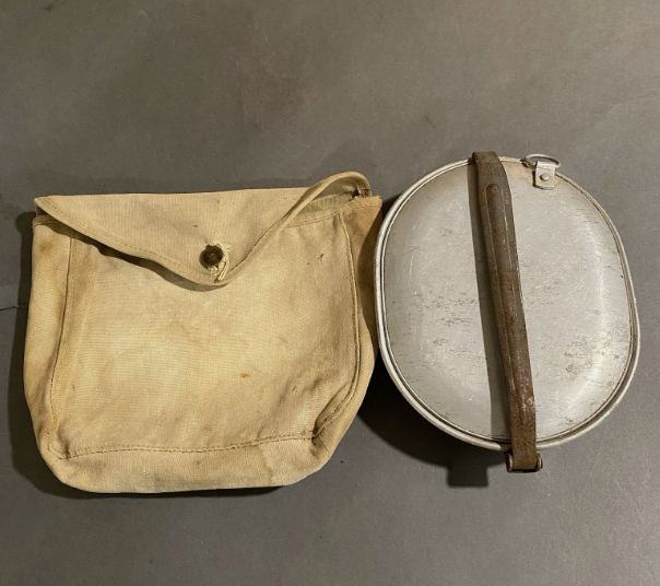 Крышка снималась и служила тарелкой. Нижняя часть становилась неглубоким котелком с дужкой, который можно было ставить на огонь (вешать кажется сомнительным вариантом).