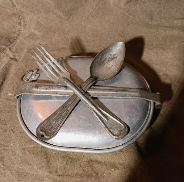 В наборе были так же вилка, ложка и нож. Могли быть отдельно или складными 3 в 1, как швейцарский нож (реже).