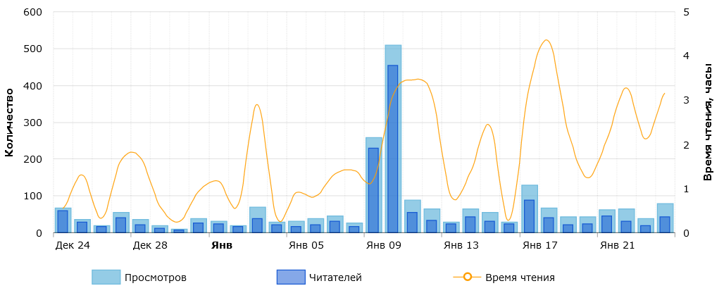 Сначала хочу подвести итоги по второй книге в цикле "Адепты Владыки". Без учёта дня завершения выкладки набралось 5000 прочтений. Для сравнения, прошлая книга завершилась на отметке в 6450. И самое тут обидное, что вторую книгу я пытался рекламировать через Яндекс и ВК, а в итоге она даже не добралась до результатов первой.