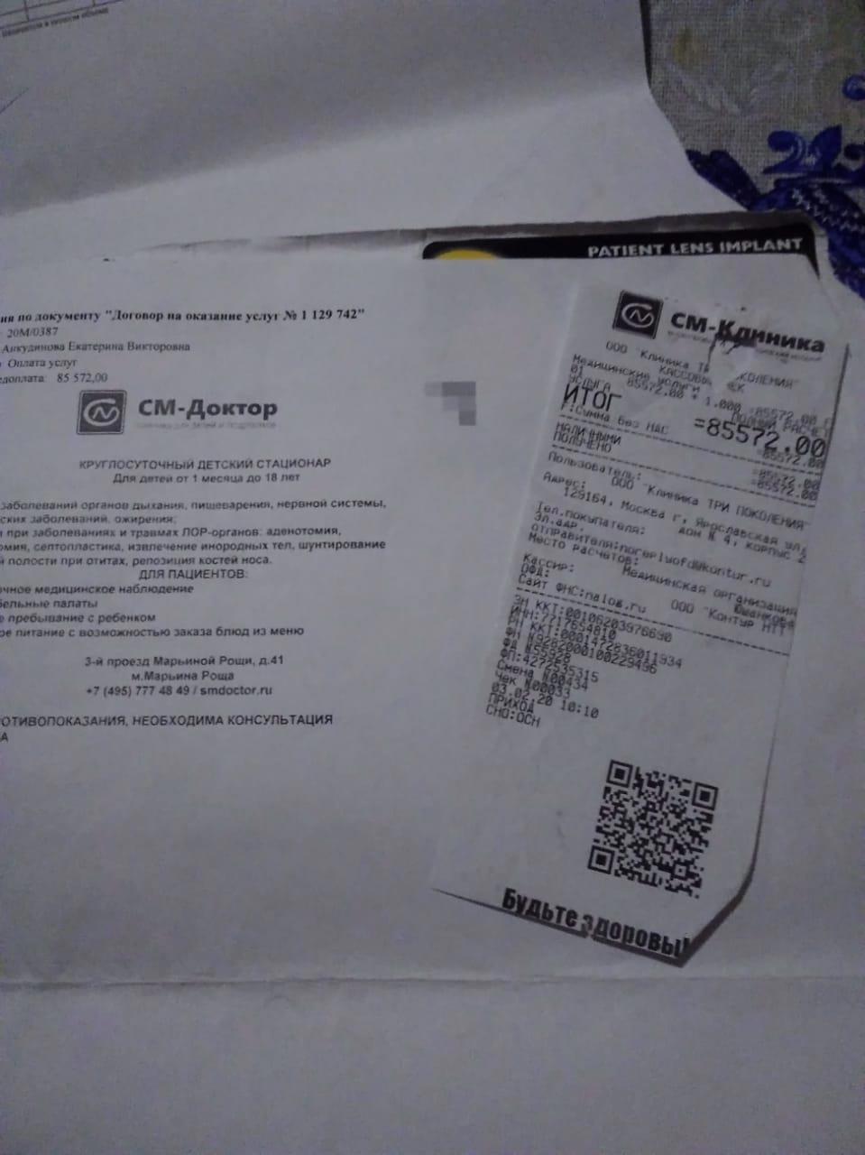 Теперь по деньгам. Первая операция стоила 85 000 рублей плюс всякие обследования и анализы обошлись в 35 тысяч. В сумме получилось 120 000 рублей примерно. Сейчас у нас есть около 50 тысяч, и нужно ещё где-то семьдесят.