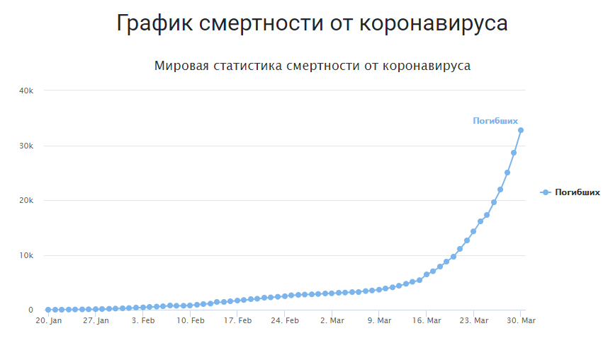 За три месяца, на фоне экспоненциального роста числа зараженных уже больше 700К подтвержденных случаев, почти 36 К умерших, отношение умершие/выздоровевшие 1/6 примерно, если в целом по миру. Я даже не хочу думать о том, что эта статистика сохранится, надеюсь, что она будет не хуже чем хотя бы в Китае.