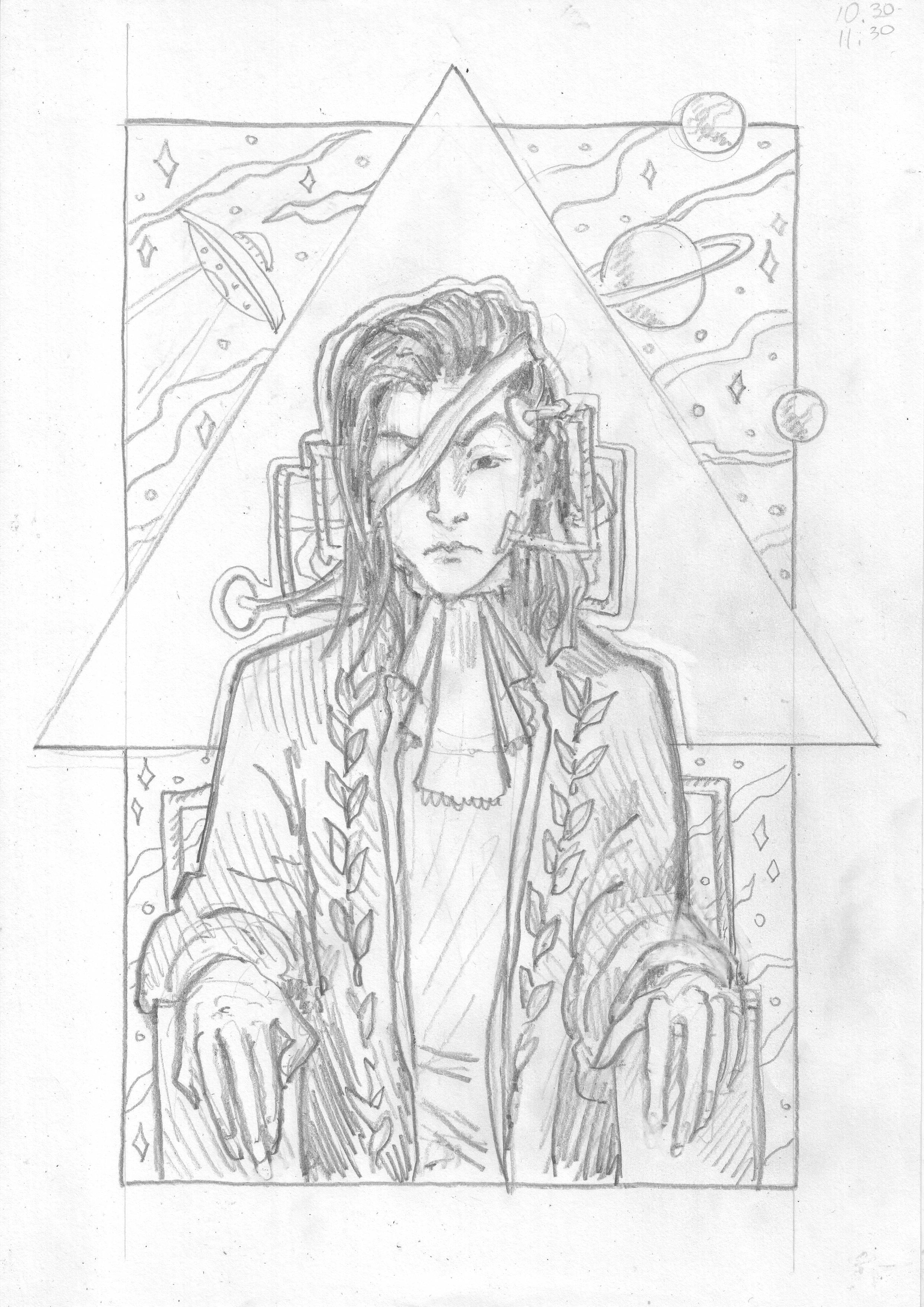 А теперь, покажу ход работы над иллюстрацией, которая постепенно превратилась из портрета героя в обложку