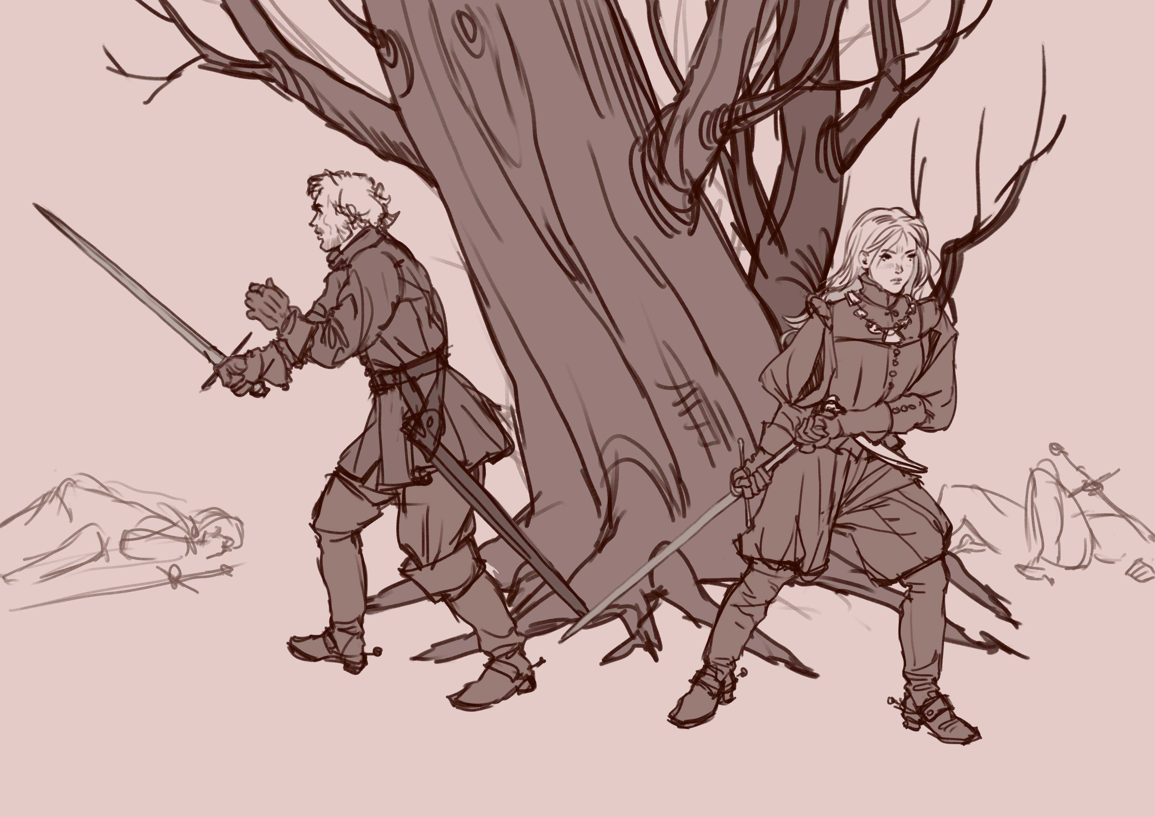 Проработка персонажей по анатомии. Сначала королева, стоящая в фехтовальной стойке: