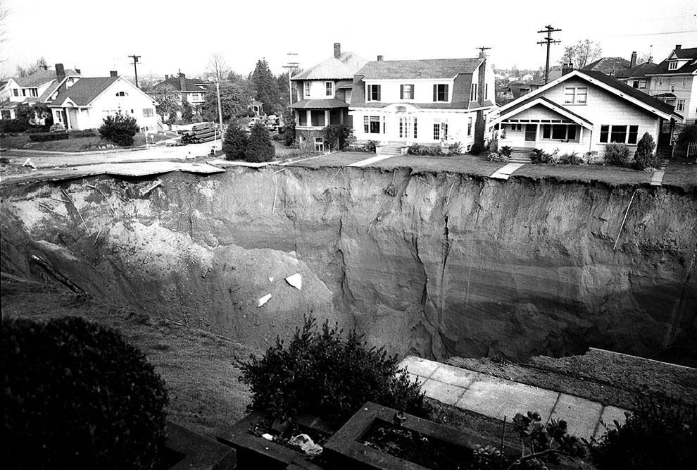 Да, к сожалению, такое случается часто по вине самих людей. Например, вот эта дырка появилась в пригороде Сиэтла в 1957 году из-за того, что там плохо следили за канализационными системами: