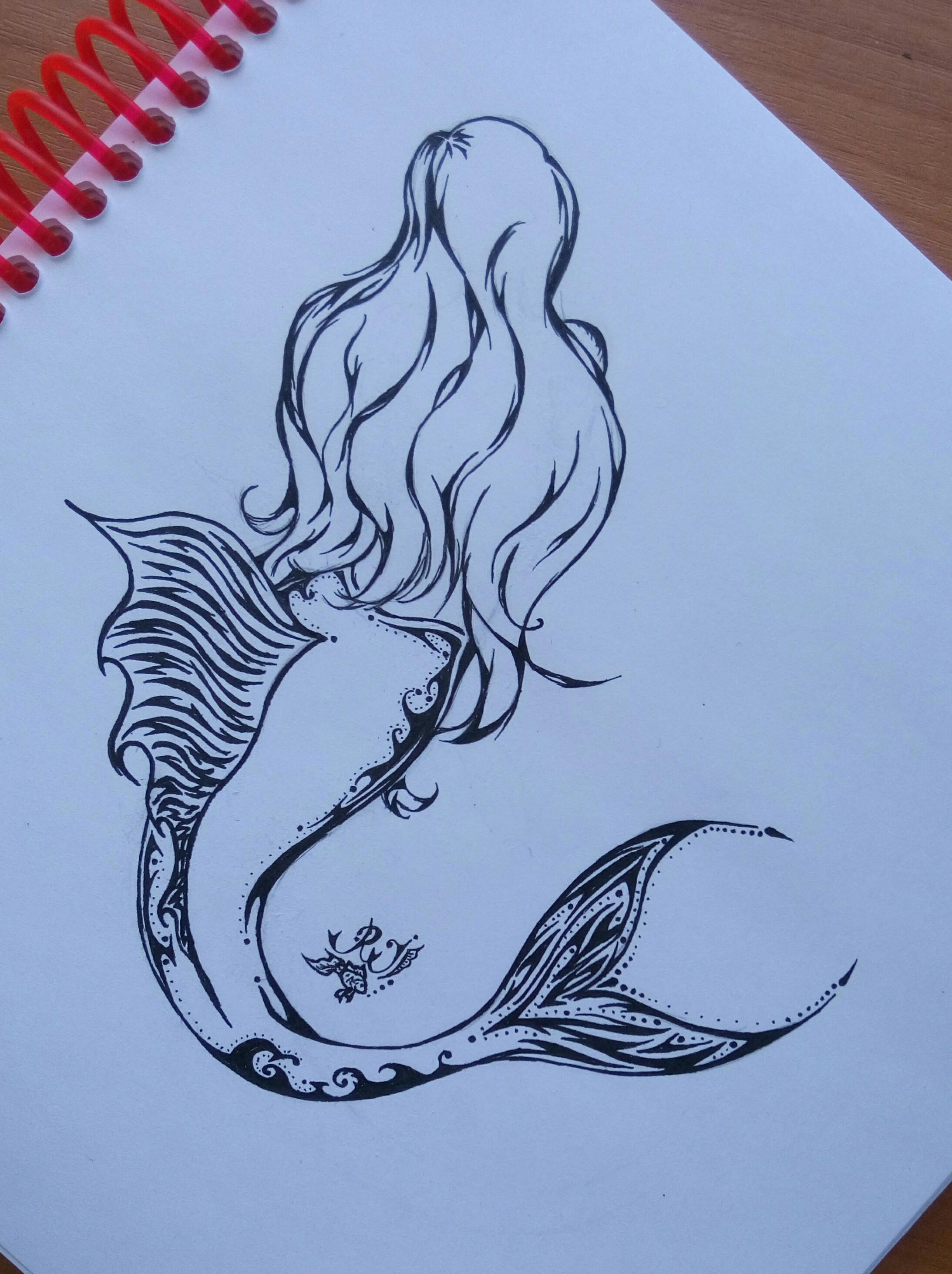 "Пингвины были, коты, крысы и иже с ними — тоже. Так почему бы теперь не переползти плавно на сказочных созданий?" — так я подумала и чирканула русалочку =)