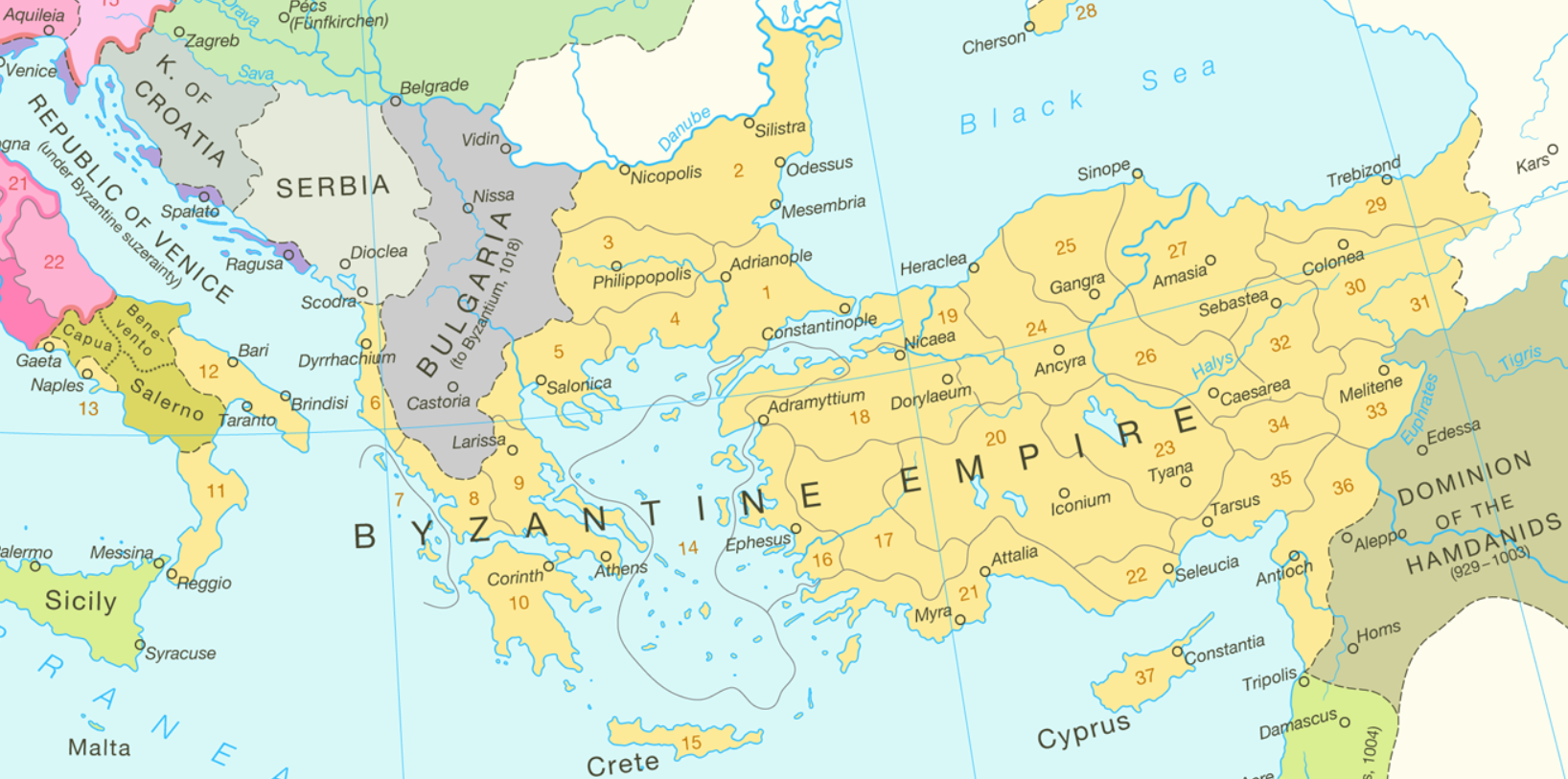 Наконец, Византийская империя пережила арабские и славянские вторжения и успешно восстановила свою власть над большей частью Балканского полуострова в течение первой половины одиннадцатого века, в частности, свергнув Болгарскую империю в 1018 году. Однако византийские границы снова оказались под серьезное давление во второй половине одиннадцатого века, на этот раз со стороны печенегов на севере, норманнов на западе и больше всего мигрирующих турок-сельджуков на востоке. Последовавшие за этим катастрофы положили конец всякой надежде на византийское возрождение территории и могущества, которыми она хвасталась как Восточная Римская империя ...