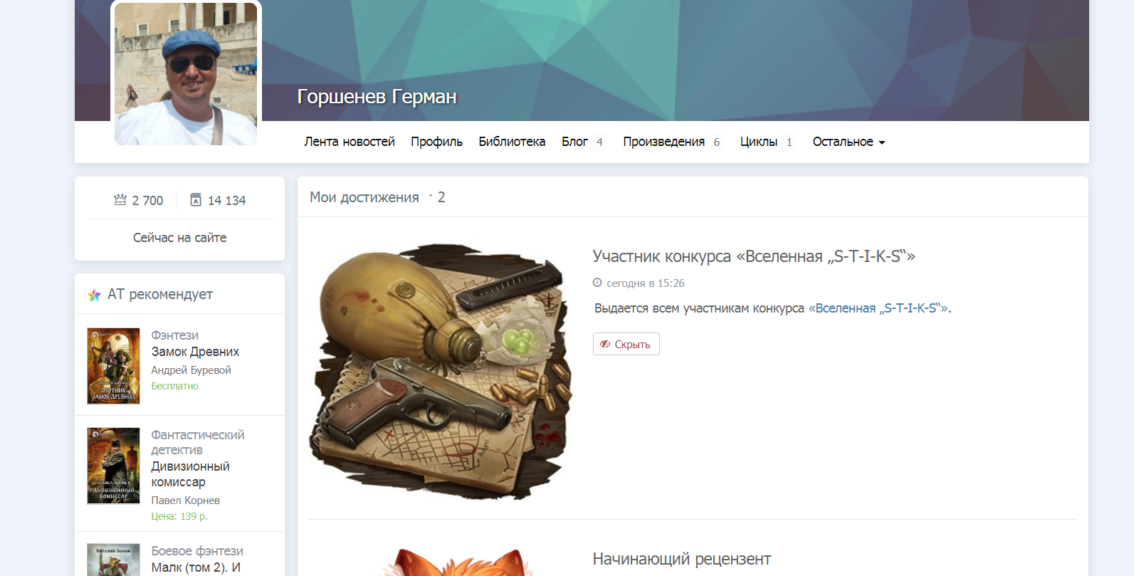 Автор: Горшенев ГерманМне, как никому, дорога эта награда. В моей книге очень важную роль сыграл очень странный артефакт - зелёная жемчужина. И каково было моё удивление, когда я получил за свою книгу достижение, на которой их сразу три! Таки-да! Я это заслужил! Жалко, что оплетённого палаша нет, но и так неплохо!