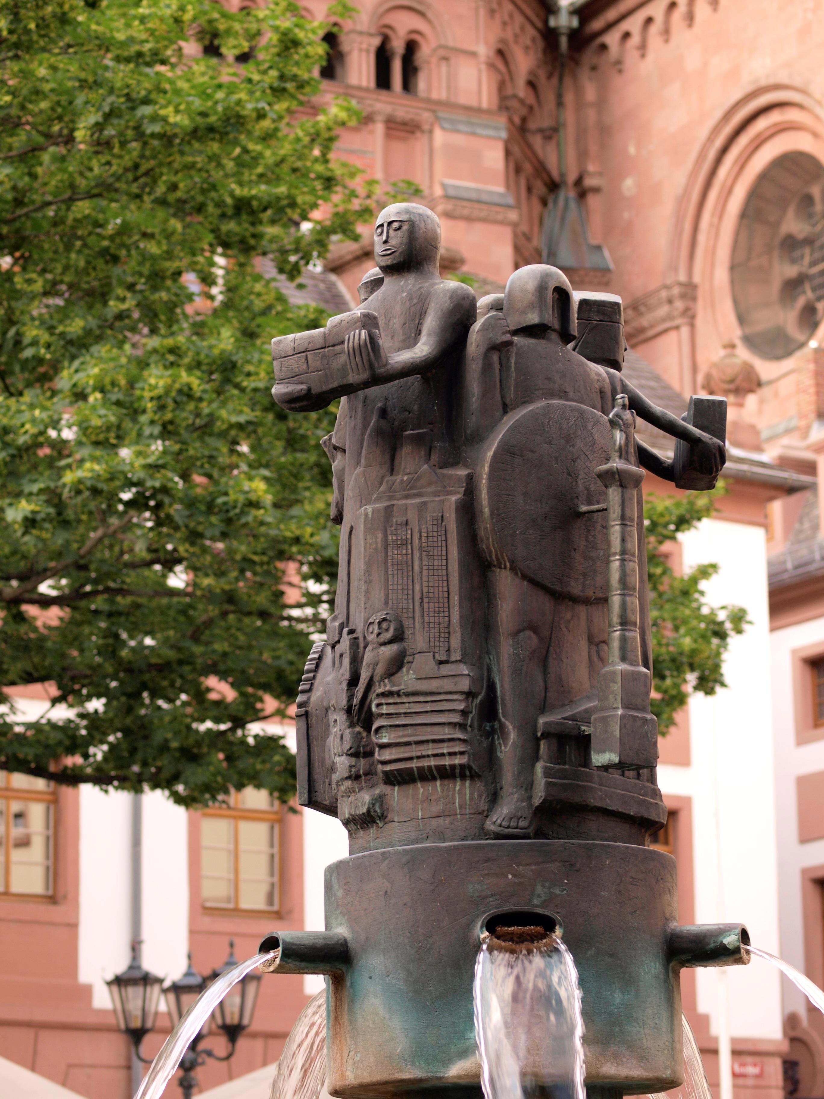 В самом центре площади располагался каменный фонтан в виде чаши. На постаменте, из-под которого водопадом стекала вода, спиной друг к другу стояли четыре небольших статуи – две женщины и два мужчины в плащах. Фонтан был окружен прилавками. Пока Робин остановился рядом с торговцем яйцами, на столе у которого топталась пушистая рыжая курица, я пробралась между столами и обошла фонтан кругом. Мужчины были бородаты и носили круглые шапочки. Одна женщина была в шляпе с полями, на второй головного убора не было. Каждый персонаж держал что-то в руках. Первый мужчина – домик, второй – чашу, женщина в шляпе – кукурузу, ну а последняя героиня прижимала к груди перо. Я присела на краешек фонтана и поболтала рукой в холодной воде.
