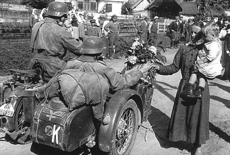 Ответ на следующих фотографиях: советские колхозники встречают гитлеровцев