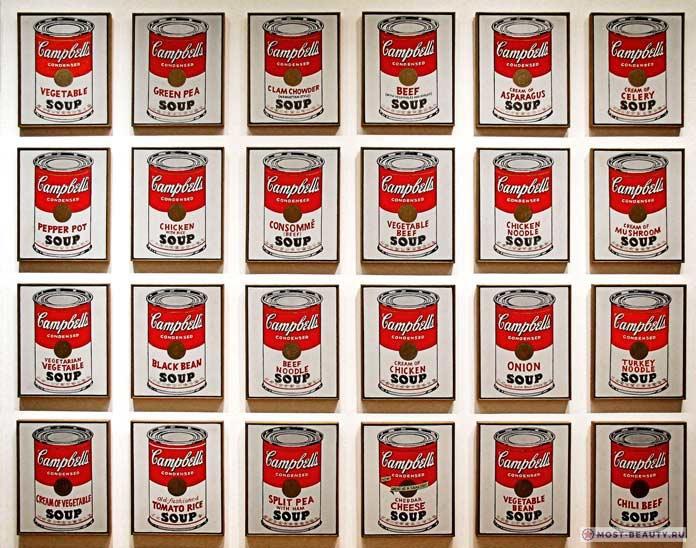 Но Энди не громоздит конструкции из кухонь с их мебелью, он завораживает этикеткой - основой воздействия коммерческой упаковки.