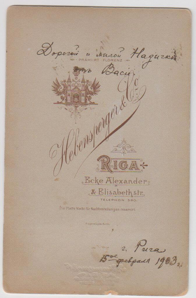 На обороте была надпись: «Дорогой и милой Надички от Васи. Рига, 15 февраля 1903 года».