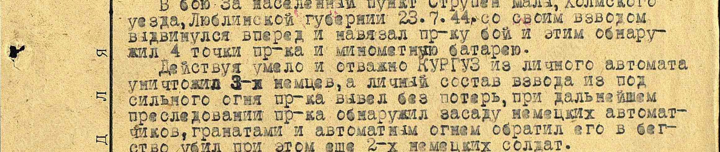 Звали моего прадеда Кургуз Мирон Прокофьевич и родился он в далеком 1908 году, а умер в 1976 году. По словам матери он был очень строгим человеком, если обычно бабушки и дедушки любят посюскать с внуками, то ее дед, мой прадед, был не таким. Он всегда говорил только по делу, любил покомандовать, хвалил очень редко и любил указывать на различные ошибки. Про войну он практически никогда не говорил, стоило зайти разговору о войне и он сразу замолкал и уходил.
