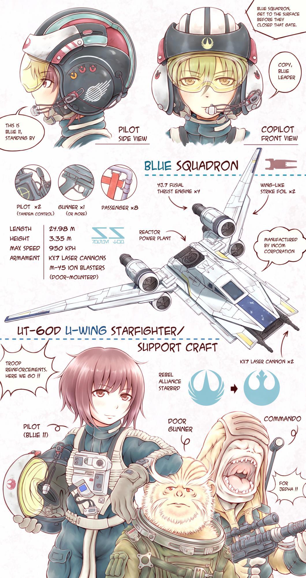 Попалась мне на глаза такая удивительная коллекция иллюстраций одного художника, посвящённых космическим истребителям вселенной "Звёздных войн". Особенная ценность этих страничек в том, что сам автор не поленился перевести текст с них на английский - в оригинале там всё, как можно догадаться, иероглифами.