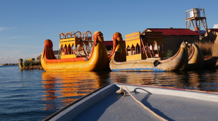 Главное - острова и поныне на месте (от 60 до 90 штук по разным источникам), сложно сосчитать, ведь они ж из тростника, которого там растёт навалом, хоп - построили новый, хоп - выбросили слишком подгнивший или разделили один остров на два маленьких. По мягкому, нагретому солнцем золотистому тростнику бегают дети, качаются на гамаках взрослые, качаются на волнах огромные тростниковые лодки, украшенные мордами пумы. От всего этого тростникового великолепия роняют челюсти в Титикаку восторженные туристы, для которых отвели целых десять островов под гостиницы и музей.